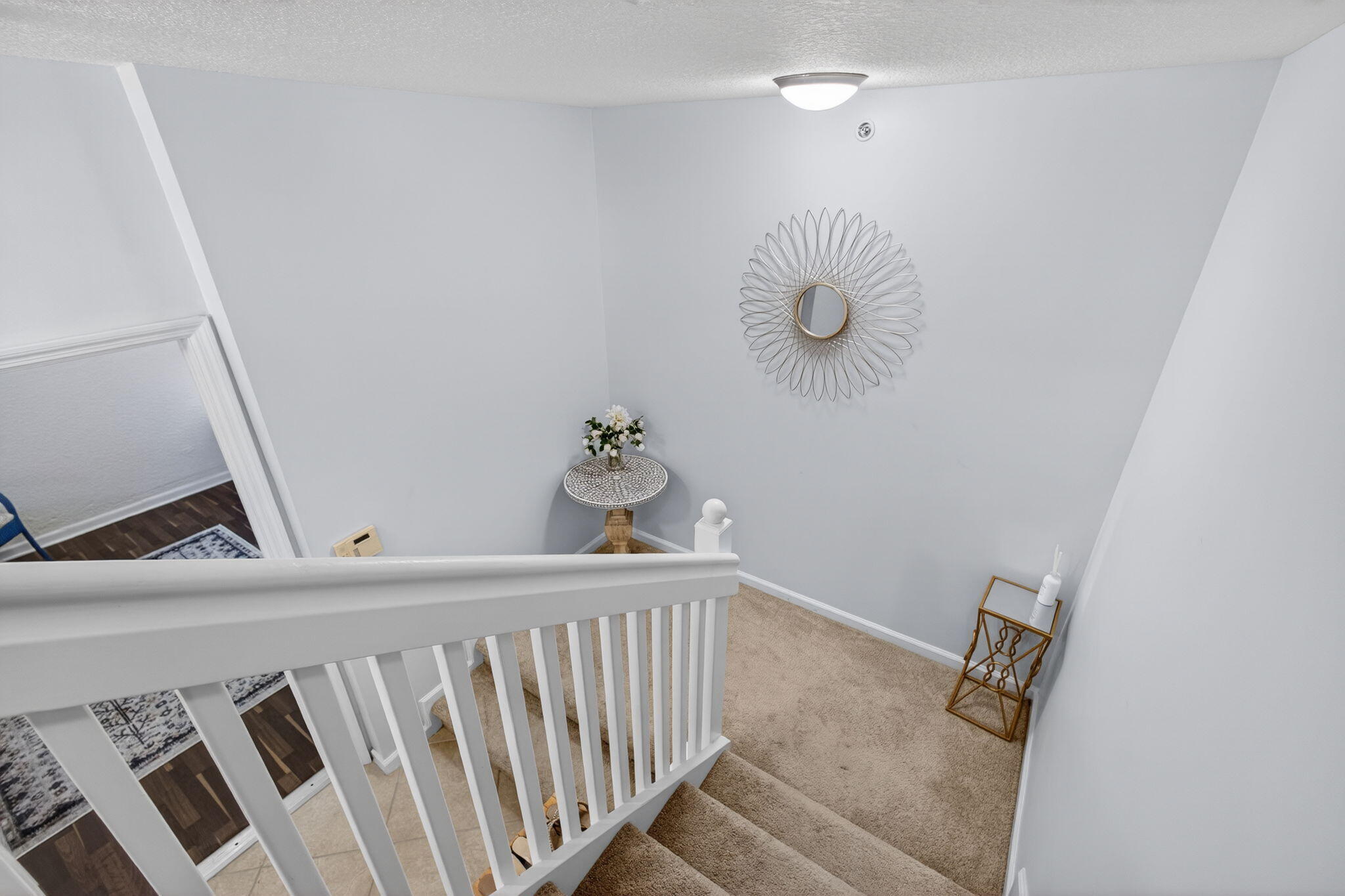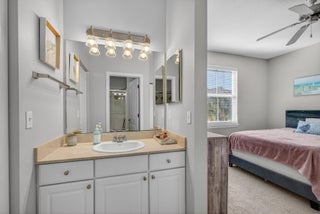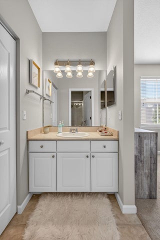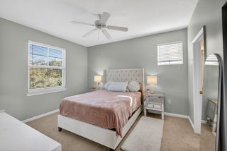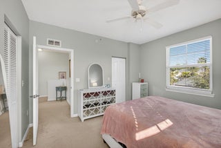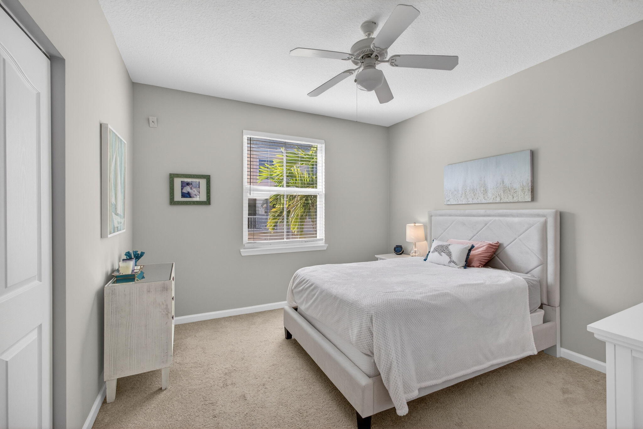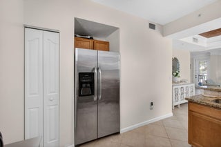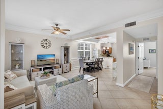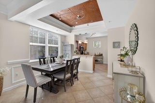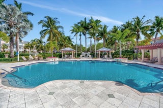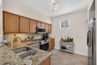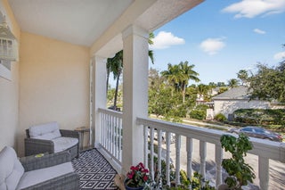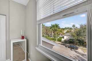 Corner-unit townhome in Abacoa features 3 floors of well-designed living with lots of windows and light. The ground level features a large flex room ideal for a home office, den, or gym, plus a two-car garage. Second floor showcases a large bedroom, a full bath and an open kitchen with stainless steel appliances, granite countertops, tiled backsplash, and wood cabinetry, flowing into a dining room highlighted by a copper tray ceiling and elegant wainscoting. The living room opens to a private balcony with a view of the pool. Crown molding adds refined detail throughout. The third floor offers two en suite bedrooms, a versatile loft, and convenient laundry. Hurricane-impact windows and doors throughout provide peace of mind and efficiency. Pool, gym and playground across the street.