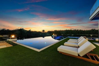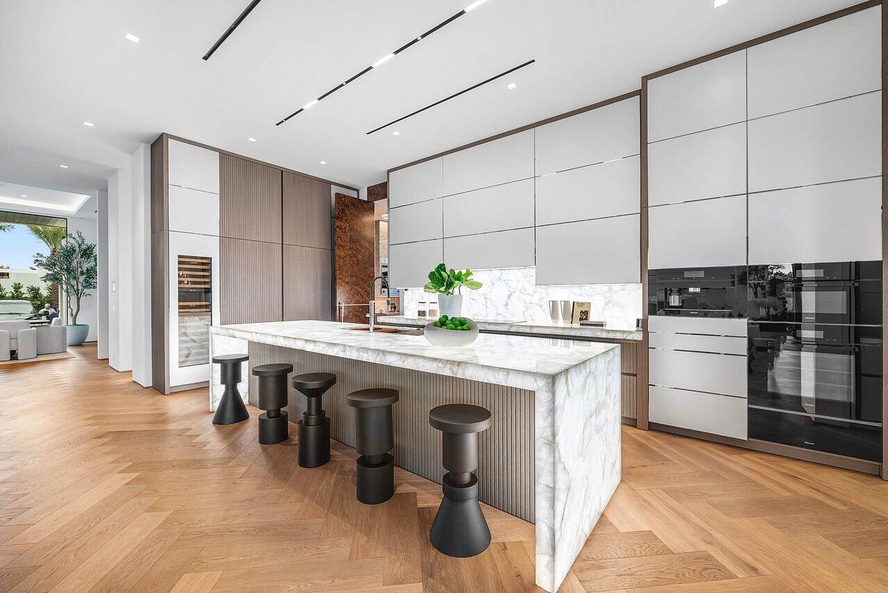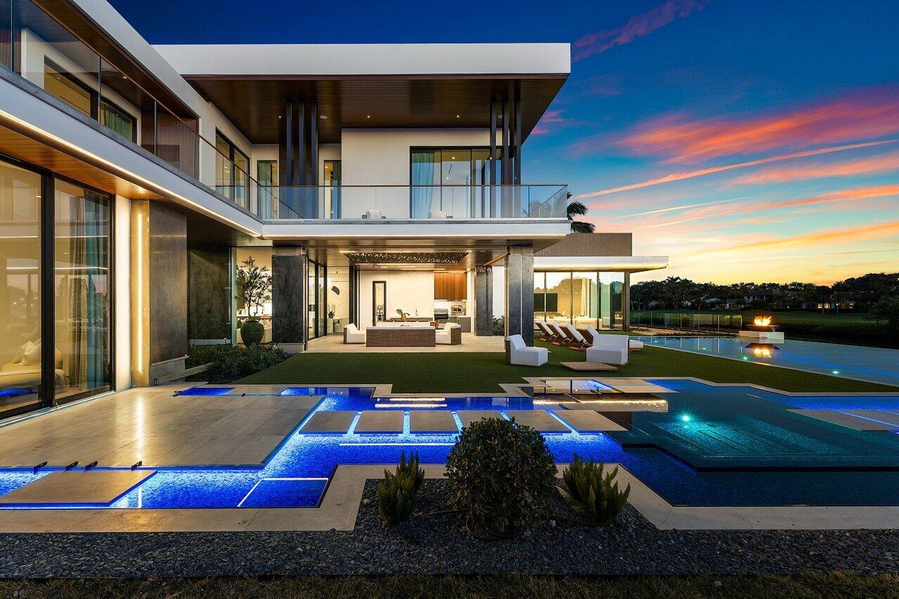 Step into unparalleled luxury in this brand-new custom estate located in the prestigious guard-gated community of Admirals Cove. Perfectly positioned on a quiet cul-de-sac just steps from the main clubhouse. This residence offers effortless access to world-class amenities, dining, spa, golf, and marina. A dramatic travertine and silver-leaf feature wall welcomes you, while the floating Cristallo staircase serves as a striking architectural centerpiece. Offering approximately 9,971 SF under air and 12,600 SF total. The home features 5 bedrooms including a first-floor primary suite, 6.1 baths, MAFI Austrian wood floors, and exceptional craftsmanship throughout. Two designer kitchens include a chef's kitchen and a stunning show kitchen with illuminated Cristallo quartzite countertopsUltra-high-end Eggersmann cabinetry, professional-grade appliances, and a custom coffee center define the designer kitchen. The primary bedroom is a serene retreat with La Finestra glass walls opening to the spa and pool, plus a spa-inspired bath with backlit agate countertops, integral stone sinks, dual water closets, freestanding soaking tub, titanium-tiled shower, and two custom walk-in closets. First-floor features include a VIP guest suite, two powder rooms, elevator, striking office, clubroom, hair salon, butler's pantry, formal dining room, wine room, laundry and dog wash station. The private wellness suite offers a state-of-the-art gym, white aspen finishes, infrared sauna, red-light and salt therapy. The office showcases custom Brazilian teak blocks with brass inlays and a stone biofuel fireplace. A tranquil family lounge overlooks the pool, gardens, and golf course. Upstairs offers a loft and three VIP suites with balconies capturing water, mangroves, and fairway views. The resort-style outdoor living features a Euro-edge heated and chilled saltwater pool with lap lanes, fire bowls, spa, sun shelf, summer kitchen with pizza oven, cabana bath, retractable screens, premium sound, and lush privacy landscaping. Additional highlights include 11'9" ceilings, Cristallo underlit countertops, La Finestra windows and doors, two exotic stone fireplaces, Crestron smart home technology, full-house generator, VRF climate system and high-tech security. The air-conditioned five-car garage offers 13' ceilings, EV charging, and lift capability. Front Entry: Elegant stainless steel sculpture by renowned artist, Alexander Krivosheiw featured in Architectural Digest. Required Admirals Cove golf membership includes two clubhouses, 45 holes of championship golf, marina, yacht club, five restaurants, tennis, pickleball, spa, salon, fitness, and kids club. Close to PBI. A rare and irreplaceable offering. BUILDER: Boca Raton Custom Homes ARCHITECT: Randall Stofft