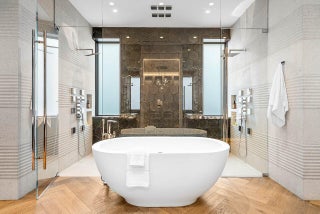 Bar, Built-in Shelves, Closet Cabinets, Custom Mirror, Decorative Fireplace, Elevator, Entry Lvl Lvng Area, Fireplace(s), Foyer, Cook Island, Pantry, Roman Tub, Split Bedroom, Upstairs Living Area, Volume Ceiling, Walk-in Closet, Wet Bar