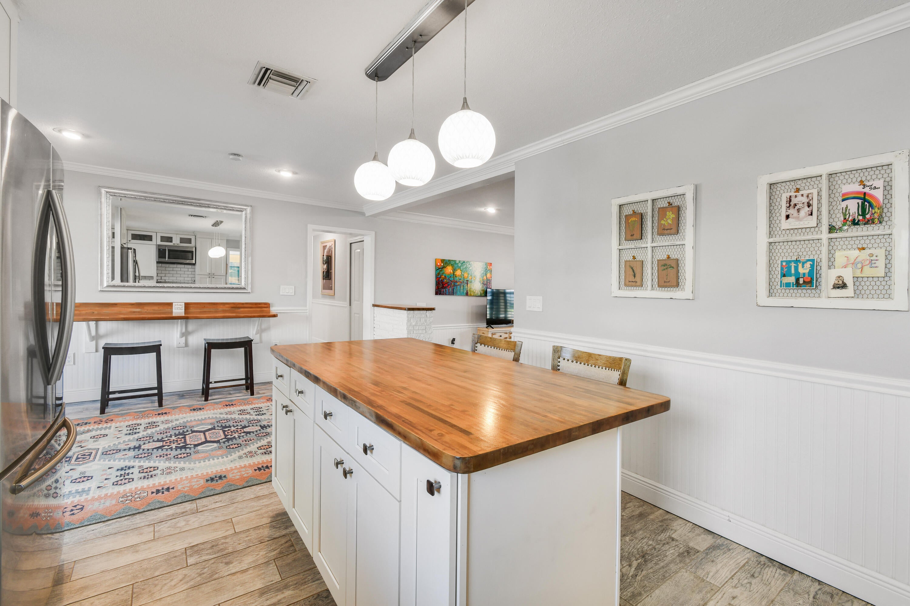 Located in the heart of Hobe Sound's most coveted neighborhood, this 3 bdrm, 2 bath home by Zeus Park offers the quintessential Florida coastal lifestyle. The home boasts of wood-look tile flooring, beautiful white kitchen cabinetry, butcher block counters, stainless steel appliances & split bedrooms for maximum privacy. Large windows & doors provide natural light & seamless access to the outdoor lanai & pool area. Enjoy an expansive yard with an impressive designer pool w/ artistic rock features. The backyard is a private sanctuary, ideal for year-round entertaining. Plenty of room to park a boat/RV. Impact windows, new A/C and HWH. Embrace ''Old Florida'' charm in a non-HOA community walkable to restaurants & shops. Beach is less than 1.5 mi. This desirable location is hard to beat!