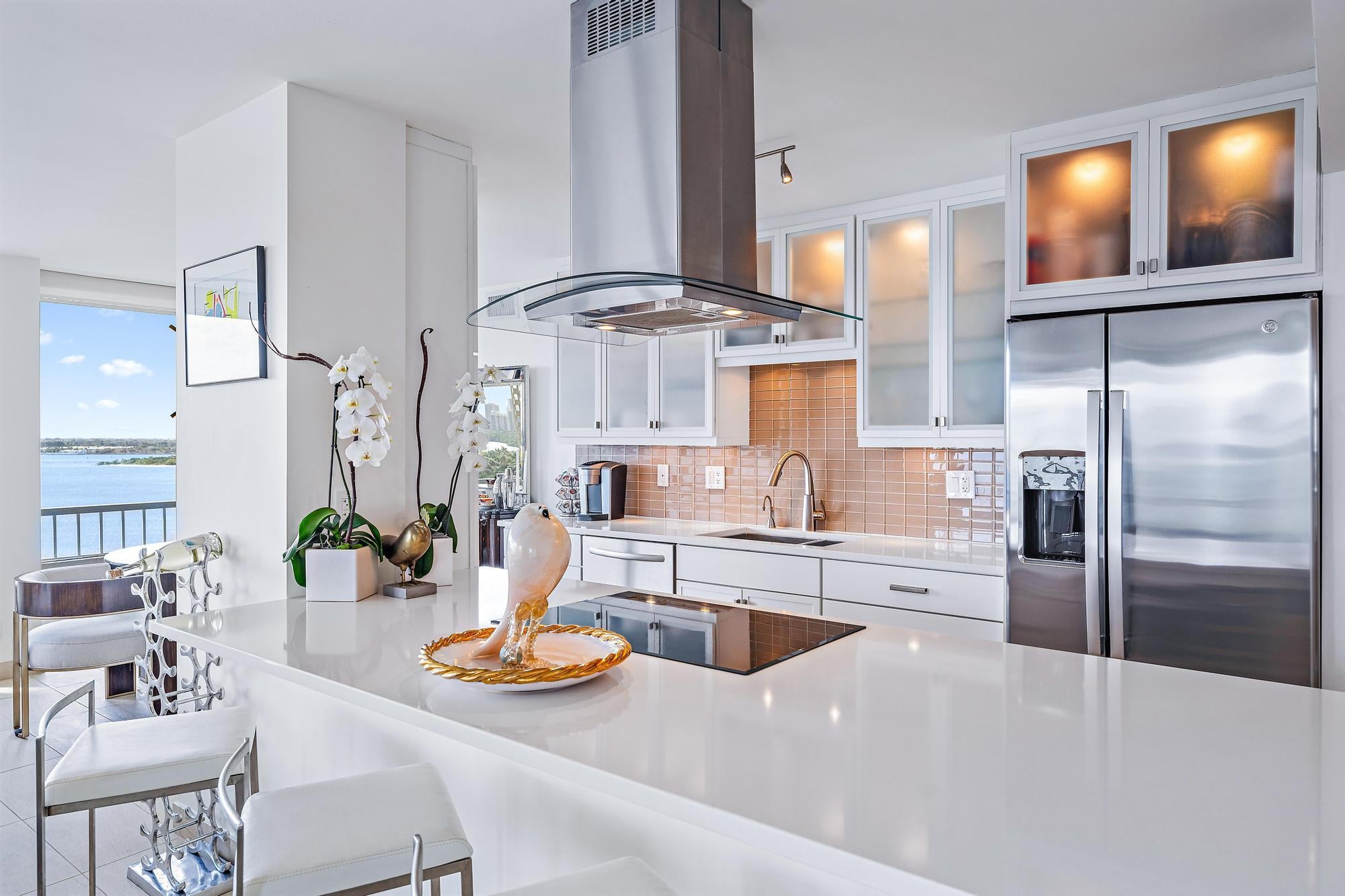 Wake up to sunrise views and unwind each evening with sunsets over the Intracoastal in this front-row coastal residence. Located in the gated, oceanfront community of Water Glades on Singer Island, this beautifully renovated condo offers sweeping views of the ocean, Intracoastal, and city skyline. Spanning over 1,400 square feet, the residence features two bedrooms and two full bathrooms with a bright, open layout and tile flooring throughout. Expansive sliding glass doors fill the space with natural light and frame stunning water views. The condo is curated with some furnishings negotiable (minus exceptions) for an easy move-in experience.Impact-rated windows throughout the residence provide both security and peace of mind, complemented by thoughtful upgrades including a new bidet, advanced water filtration with hot and cold systems, and newer appliances. The renovated kitchen includes white cabinetry, quartz countertops, stainless steel appliances, a wine cooler, newer hot water on demand at the kitchen sink, and a large island that opens to the living areaperfect for everyday living and entertaining. Step onto the covered balcony to enjoy ocean breezes, passing boats, and vibrant sunsets. The primary suite offers a peaceful retreat with a sitting area, spacious closet, and spa-style bathroom with dual vanities, glass-enclosed shower, and soaking tub. The guest suite is equally inviting and generously sized, easily accommodating two queen beds for hosting a family or guests. Water Glades is a premier, 24-hour manned-gated oceanfront community offering a refined, low-maintenance lifestyle. Residents enjoy a newly renovated lobby, two resort-style pools, a fitness center, putting green, tennis courts, shuffleboard, a well-appointed library and community rooms, and one parking space. Nestled alongside a preserve, the property offers a sense of privacy and tranquility rarely found on Singer Island. Ideally situated just minutes from world-class waterfront dining, upscale shopping, and entertainment, with convenient access to PGA Boulevard, this residence places the very best of coastal South Florida living within reach. Endless outdoor pursuitsfrom boating and fishing to golfare right at your fingertips. The building has successfully completed its 30-year recertification, including new balconies and structural repairs, with spalling completed and painting scheduled by the association. All current assessments have been paid in full, with no known pending assessments, providing confidence and long-term value for the next owner.