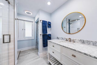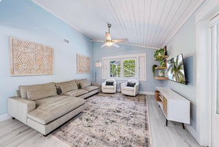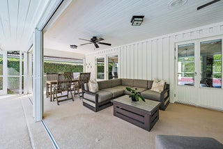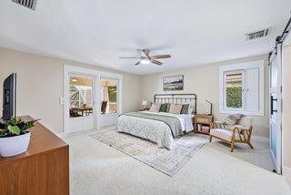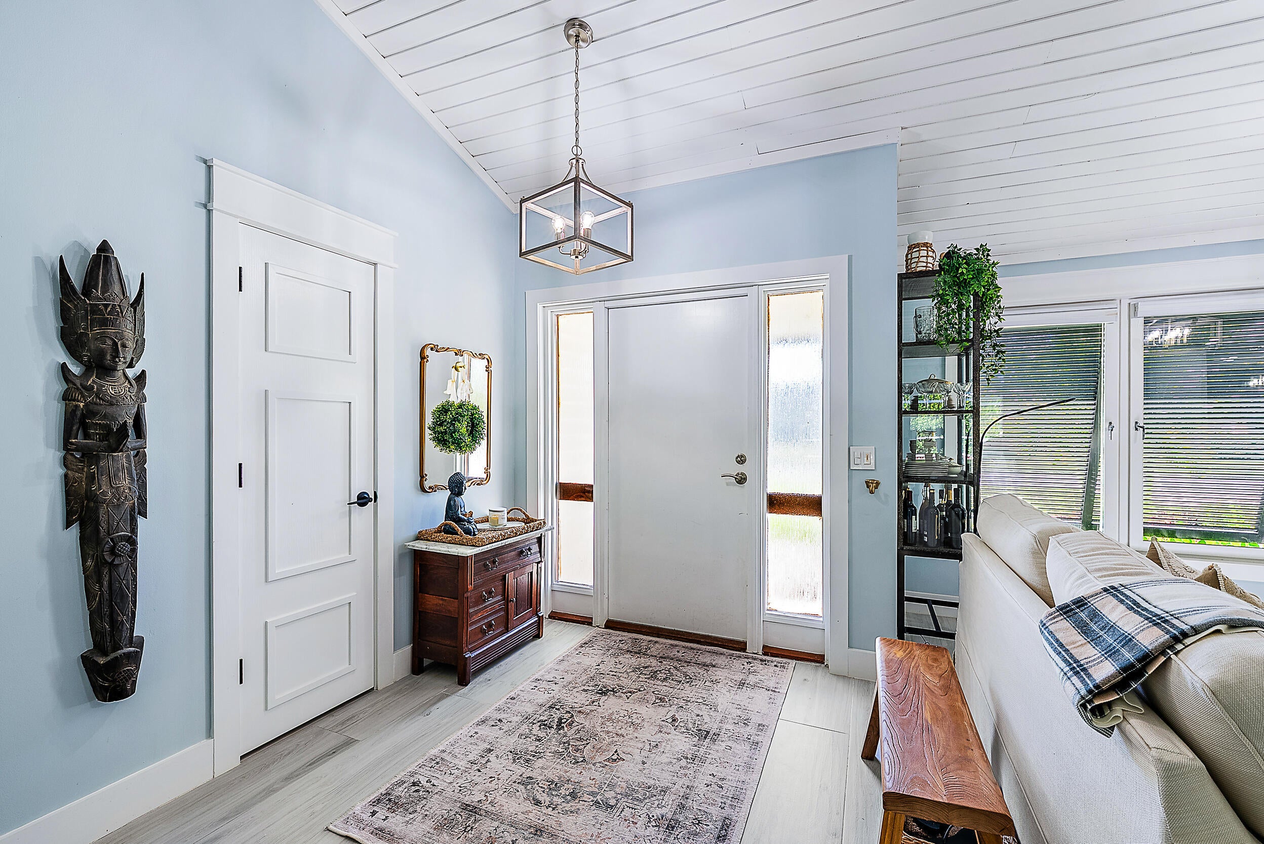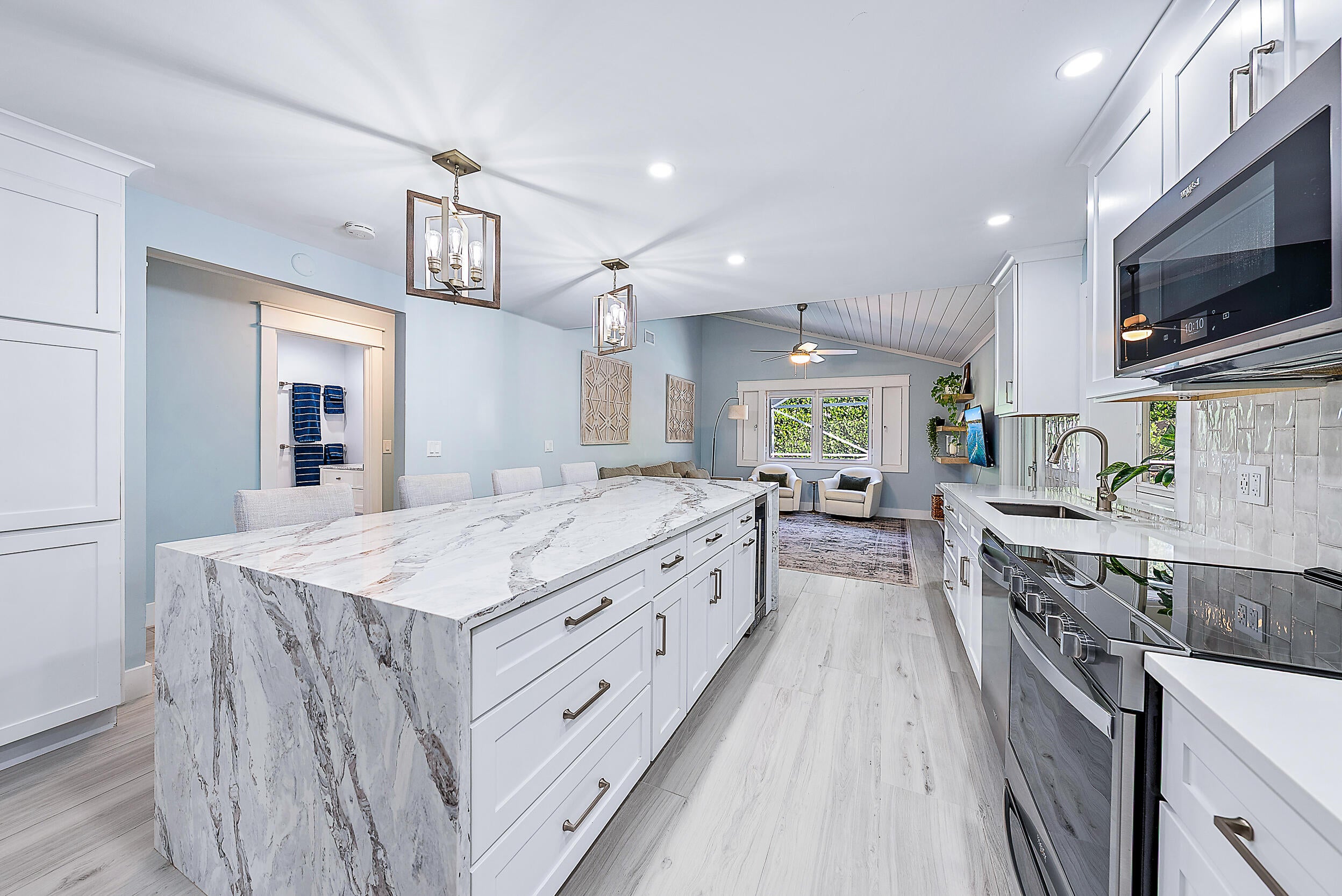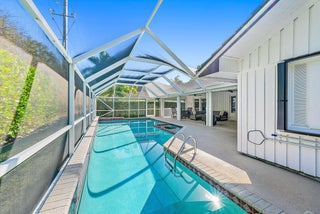 Beautifully renovated and full of charm, this one-story pool home is located in the center of it all in the highly sought-after community of Frenchmens Landing. A welcoming foyer with stylish pendant lighting sets the tone, while tongue-and-groove ceilings throughout the living, dining, and family rooms create a relaxed coastal feel. With so many cozy places to gather, the home offers a welcoming living room, a family room just off the kitchen, and a light-filled dining area that flows seamlessly to the pool and lanai. European French doors and tile flooring enhance the indoor-outdoor connection, opening to a screened lap pool and spa -ideal for everyday living and entertaining.The beautifully renovated kitchen features tile flooring, recessed lighting, wood cabinetry, a waterfall-edge quartz island with seating, stainless steel undermount sink, and a built-in pantry wall with ample storage, all overlooking the patio and pool. The primary suite is a peaceful retreat with private access to the pool, a walk-in closet with built-in shelving, and a spacious bath featuring a jetted soaking tub and a glass-enclosed rainfall shower creating a spa-like experience, dual vanities with quartz countertops, and plantation shutters. Guest bedrooms provide comfortable spaces for family or visitors, with one guest bedroom offering a built-in desk ideal for a home office or flex space. The fully renovated guest bath and additional powder room are thoughtfully designed to complement the home's coastal style. Ideally located just minutes from Trader Joe's, favorite local restaurants, the beach, and world-class shopping, with easy access to major highways and Palm Beach International Airport.