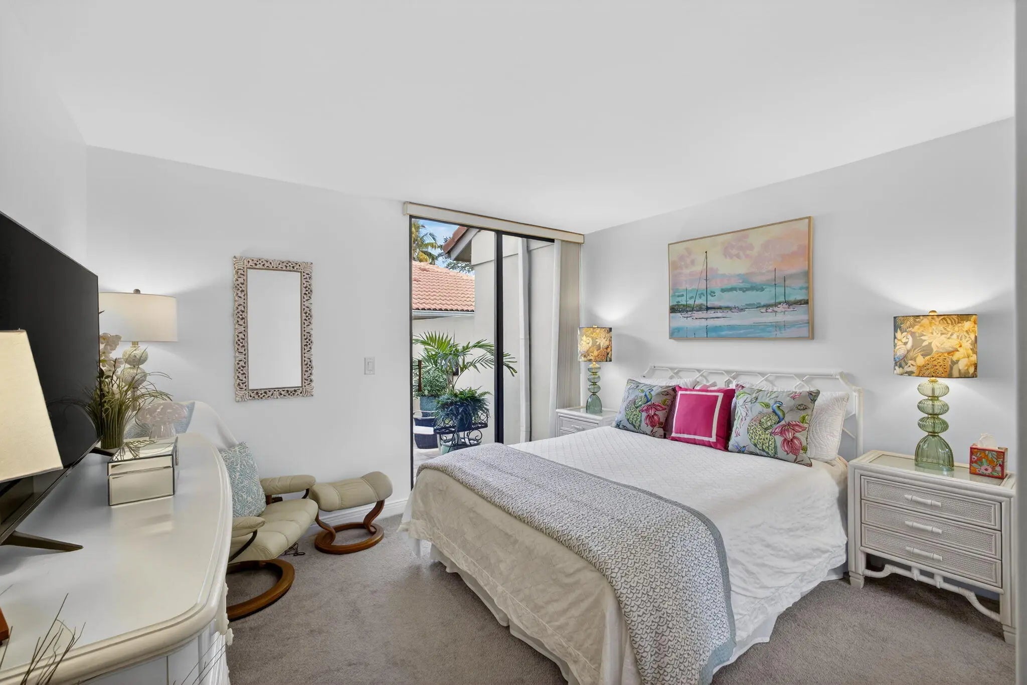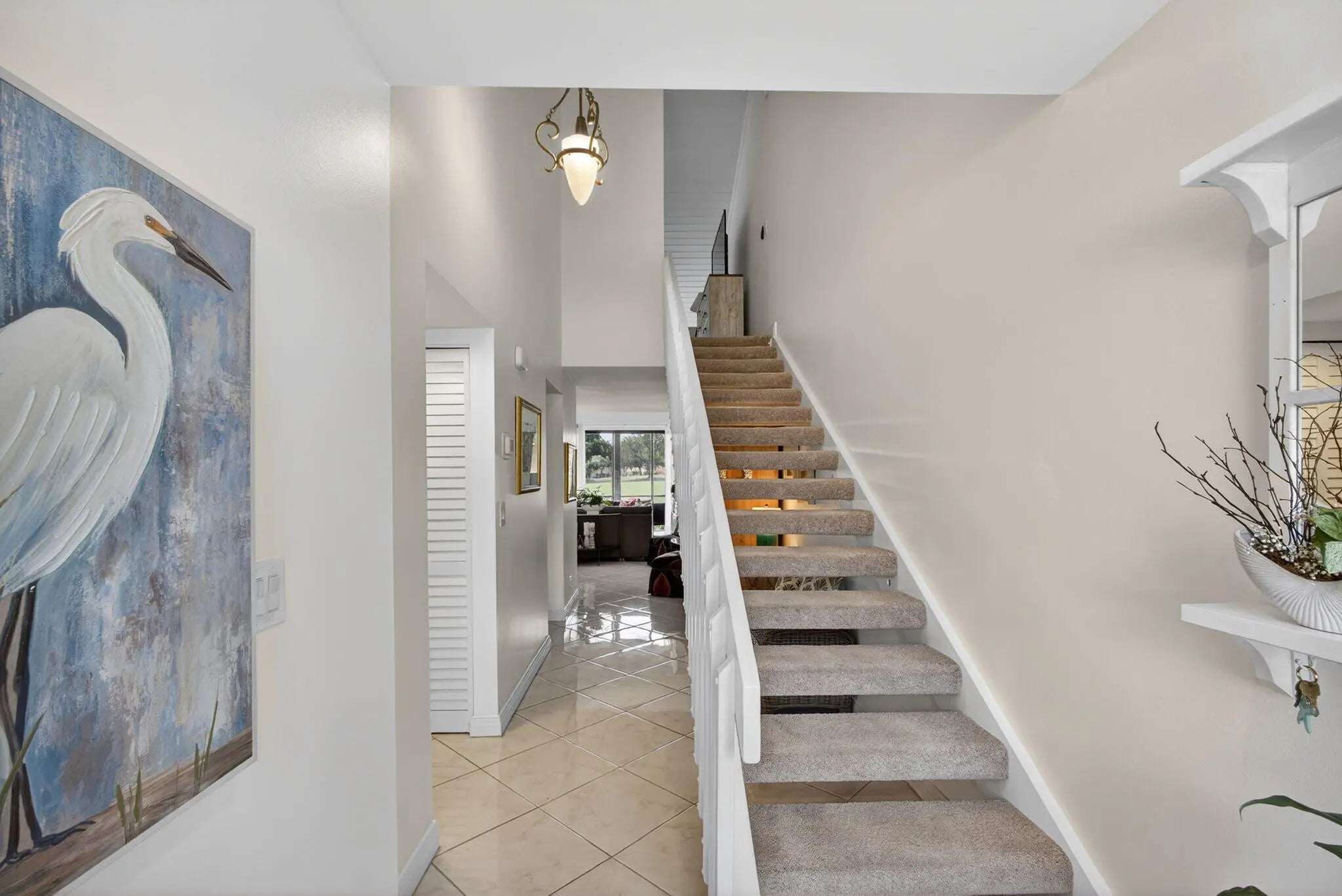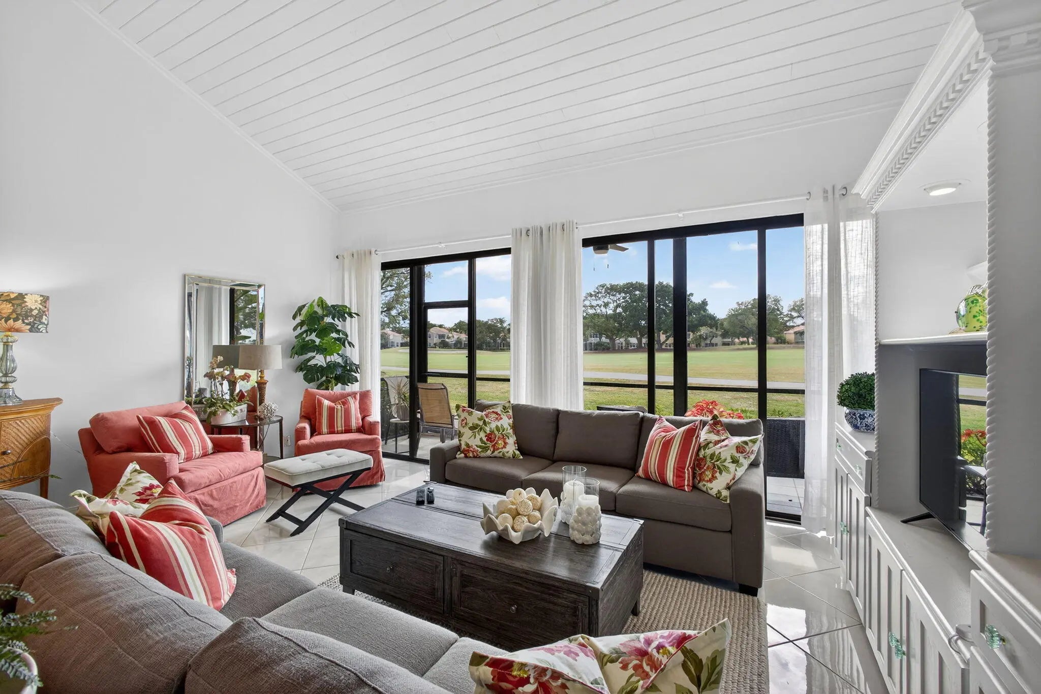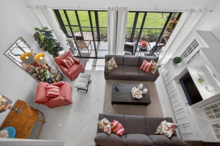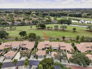 Set on the world-famous PGA Fazio course, this spacious townhouse captures breathtaking sunsets and sweeping views of the 10th hole from a screened lanai and dramatic wall of windows. Soaring 16-18' ceilings flood the home with natural light. One bedroom is conveniently located on the first floor, with master bedroom upstairs. Enjoy a newer bar-style kitchen, private garage and entry, plus a charming private courtyard made for easy outdoor entertaining. Driveway parking and nearby overflow parking add everyday convenience. Manned-gated community with private security and a heated pool, just a short walk to the PGA National Resort. Rarely available in this location, these townhomes are highly sought after and make an excellent place to call home or a smart investment.