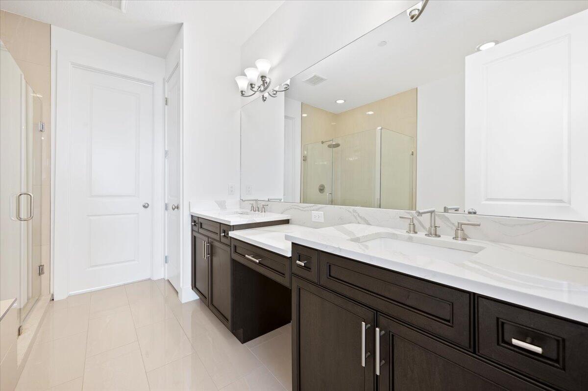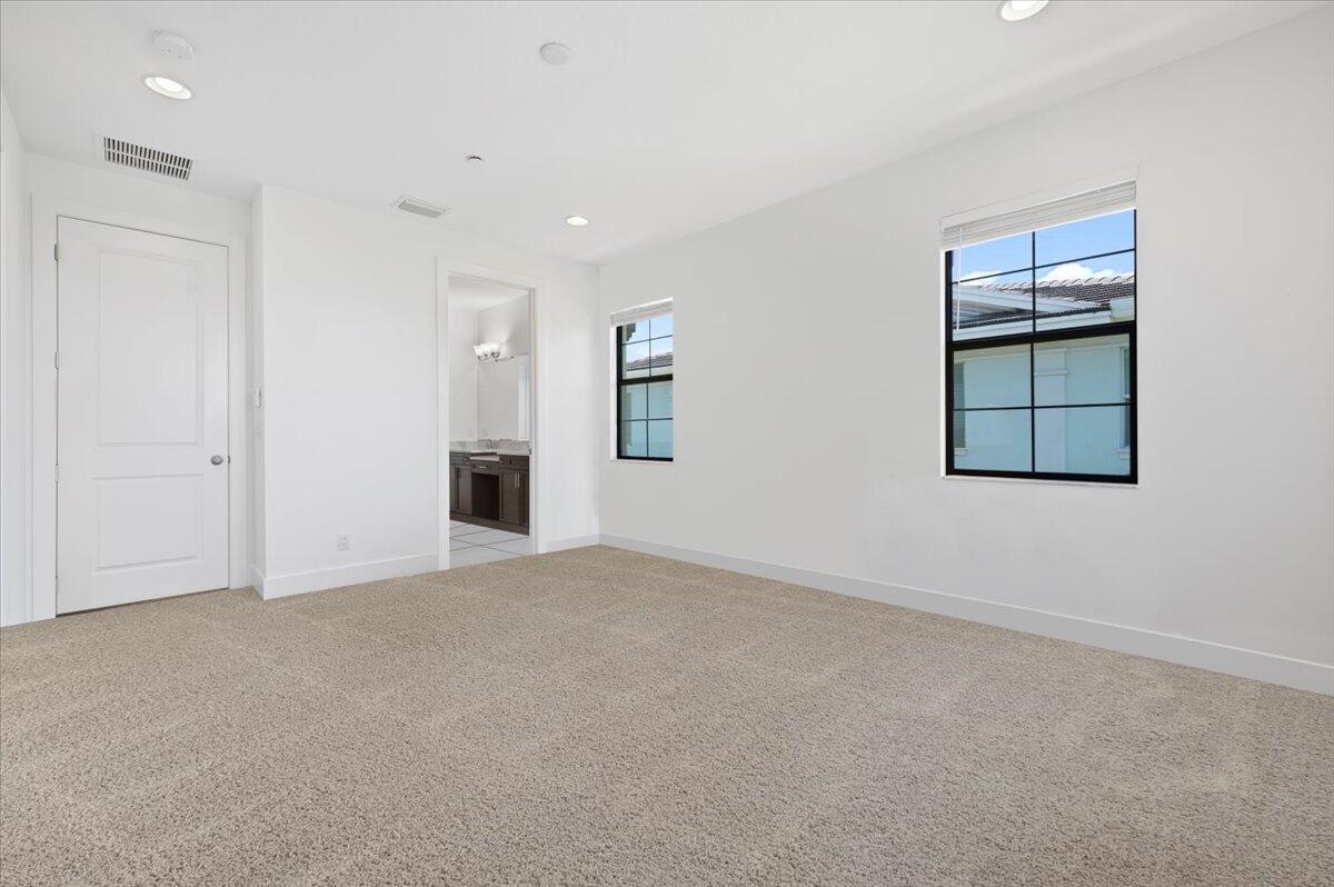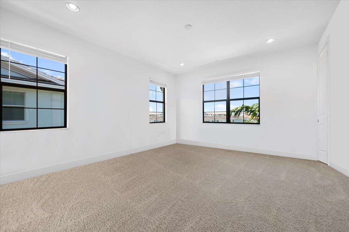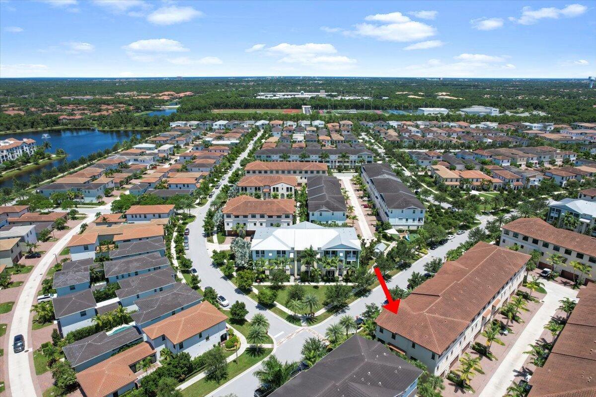 Alton corner townhome with upgraded metal stair railings, wood stairs and an automatic screen enclosure on your 10X20 balcony facing a neighborhood green space. The 9 extra windows add natural light and along with the 10 foot ceilings they create a living experience more similar to a single family home. The large and open kitchen features an oversized island, 3 walls of cabinetry with quiet close doors, a beverage/wine fridge, exterior vented hood, double oven and high level quartz counters. Added conveniences include motorized shades, oak closet shelves, a rare full soaking tub in the primary bath, HD camera surveillance, intrusion detection system, Ring doorbell and My Q camera keypad garage door opener. Walk easily to both the Alton Town Center and the Club at Alton.