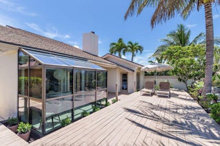 Welcome to The Bluffs a Jupiter Beach Paradise! You will fall in love with this RENOVATED Bluffs home the moment you arrive. Walk to the turquoise waters of Jupiter Beach & the Juno Pier from this light & bright 3 bedroom + loft/den/or bedroom if you like. Located high on the Ridge. Gorgeous east exposure, feel the ocean breezes and listen to the sound of the waves. Relax on the private elevated deck & watch kiteboarders sailing. Custom features: Shell stone & wood flooring throughout, custom millwork, office/den in large sunny loft, extended kitchen w/granite c-tops, French doors, coquina wood burning fireplace, ALL impact glass, atrium dining room, Newer A/C with 4 zones, community heated pool, tennis/pickleball/playgrounds. Perfect Beach Retreat. close to shops, restaurants.