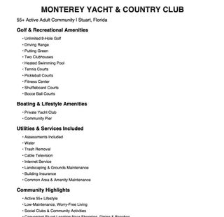 Bocce Ball, Clubhouse, Common Laundry, Golf Course, Internet Included, Library, Lobby, Manager on Site, Pickleball, Picnic Area, Pool, Putting Green, Shuffleboard, Tennis