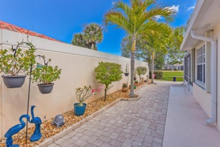 Location, Location, Light and Bright 2-bedroom, 2-bathroom Villa, Sparkling clean. The Falls at Double Tree, a gated community in Prime Hobe Sound off Seabranch Blvd, is less than 20 minutes from Jupiter Beach and less than 1 hour from the airport. The community pool is a short 3-minute walk away. The screened lanai offers a peaceful, quiet setting overlooking the lake and the 11th fairway. Impressively expanded pavers create an outdoor living area that greets your guests at the front door and extends the outdoor space. The home features Plantation Shutters throughout, high soaring ceilings, 2 master bedrooms / 2 master bathrooms, with walk-in closets, Quartz countertops, a garage with custom storage cabinets, and Epoxy Floors. The home is solid poured concrete with accordion shutters .