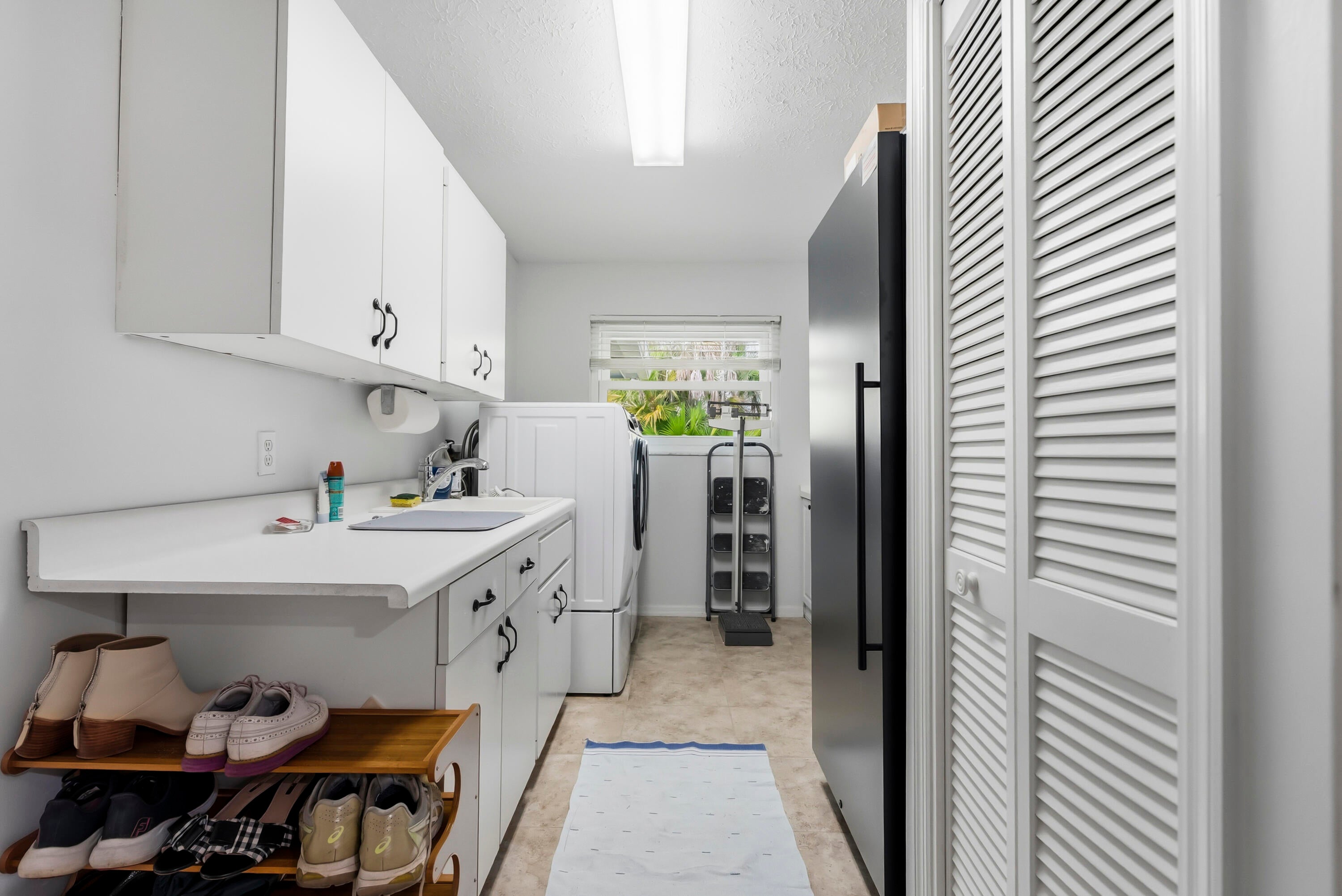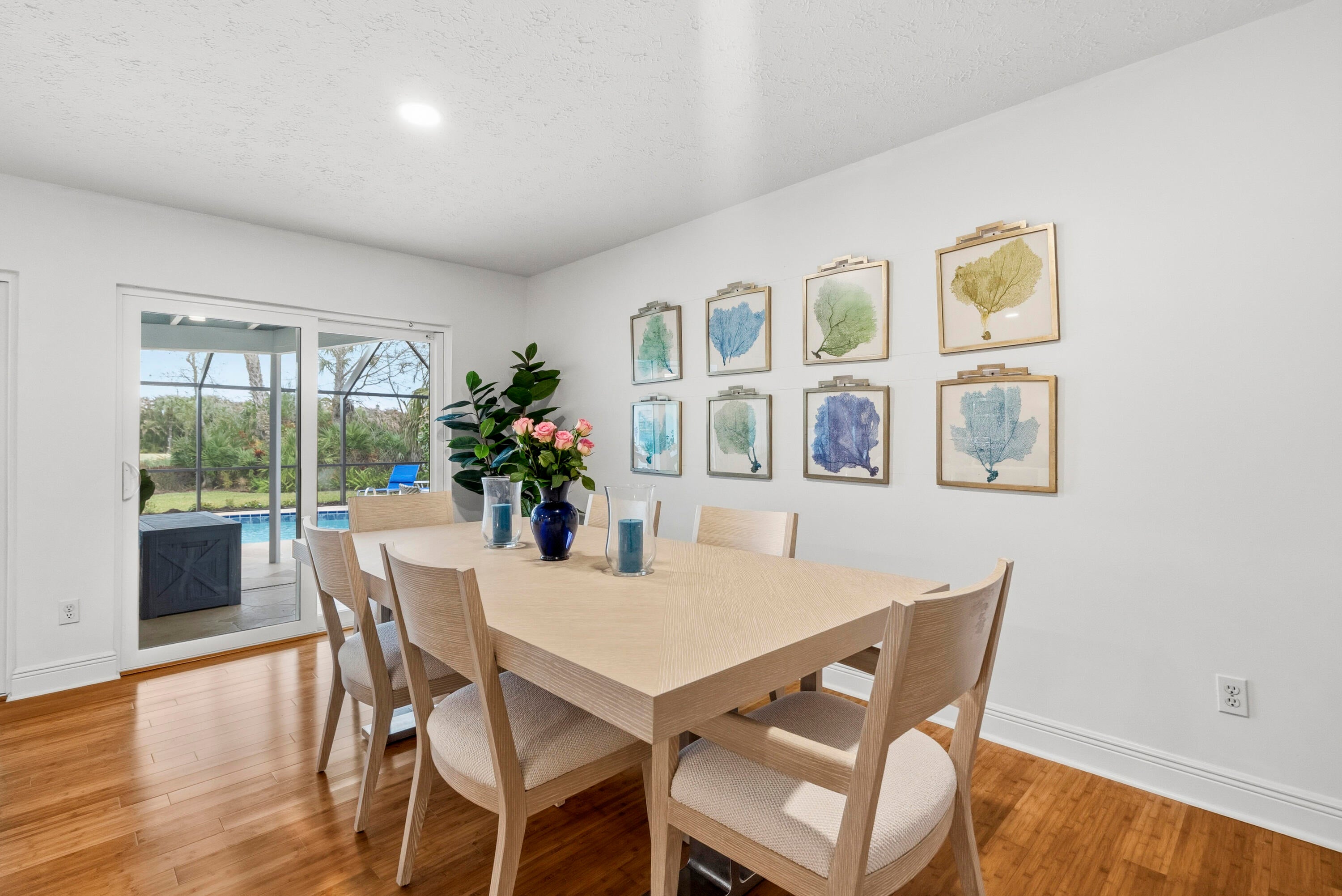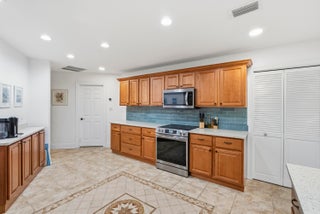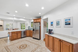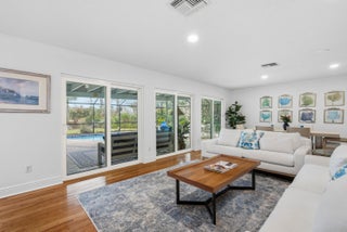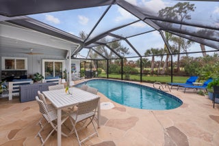 Located in the highly desirable Mariner Sands Country Club, this beautifully updated 3-bedroom, 3-bathroom single-family home offers comfort, style, and stunning views of the 6th hole green on the Blue Course. A 2024 metal roof and all impact windows and sliders provide peace of mind, while thoughtful interior updates make this property truly move-in ready. Inside, you'll find a fun Florida feel with colorful coastal wallpaper throughout, adding warmth and personality. The primary suite is a true retreat, featuring a spacious bedroom, walk-in closet, and a renovated bathroom with dual sinks and a walk-in shower. The layout is ideal for guests, as each bedroom offers its own full bathroom for privacy and convenience.The formal living room offers beautiful views of the outdoor space and features a charming wet bar, creating the perfect setting for entertaining. The spacious kitchen is equipped with stainless steel appliances, including a newer Frigidaire oven that reaches 700 degrees - ideal for pizza lovers. Just off the kitchen, the den provides additional living space and showcases a cozy wood-burning fireplace. Step outside to your private backyard oasis featuring a pool, covered patio space, and a large screened-in lanai overlooking the golf course with beautiful green views. This home offers the perfect blend of indoor comfort and outdoor Florida living in one of Stuart's premier golf communities. Mariner Sands Country Club offers 2 championship golf courses, tennis, pickleball, croquet, a world-class fitness center, resort-style pool, restaurant, and a new $35 million clubhouse.