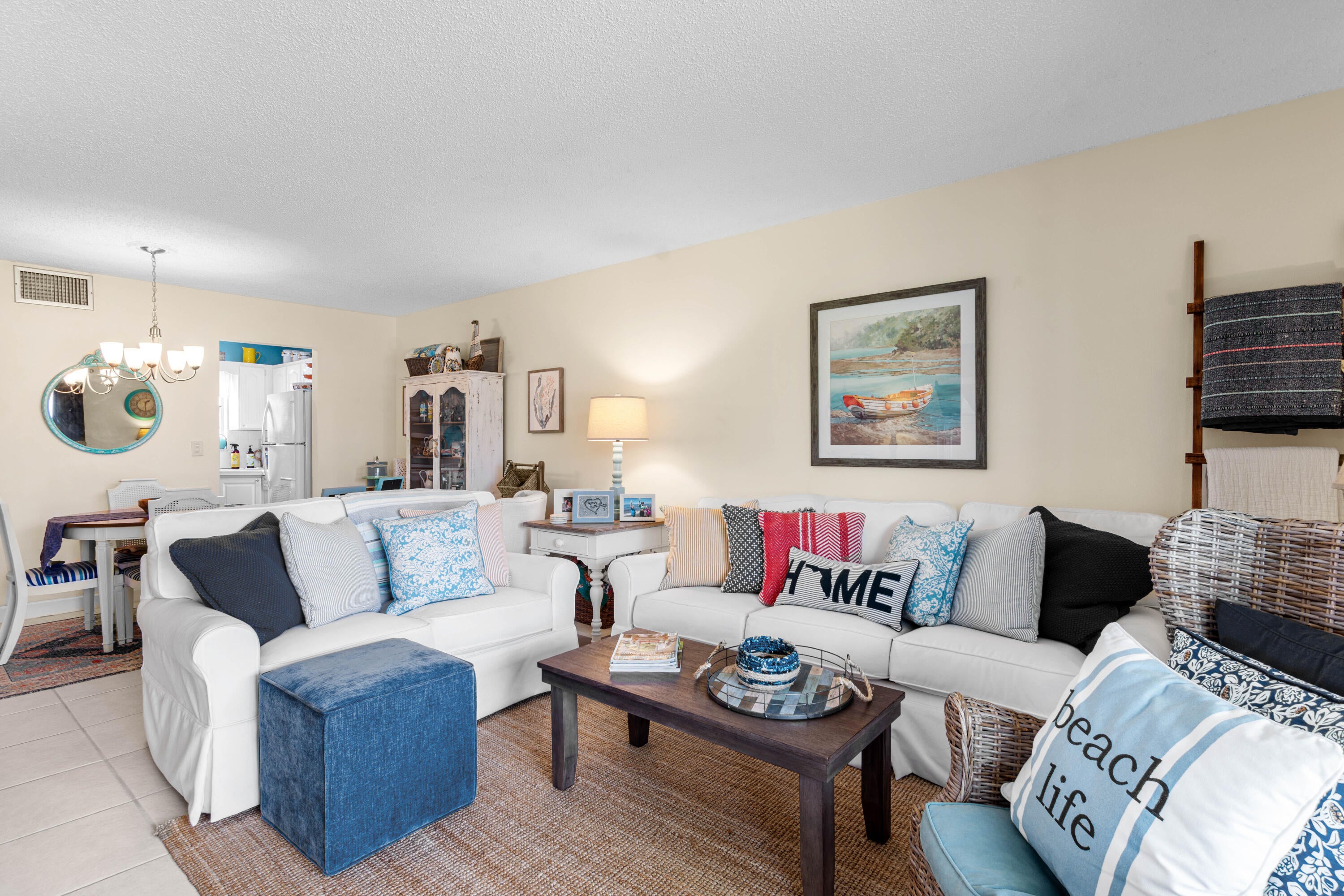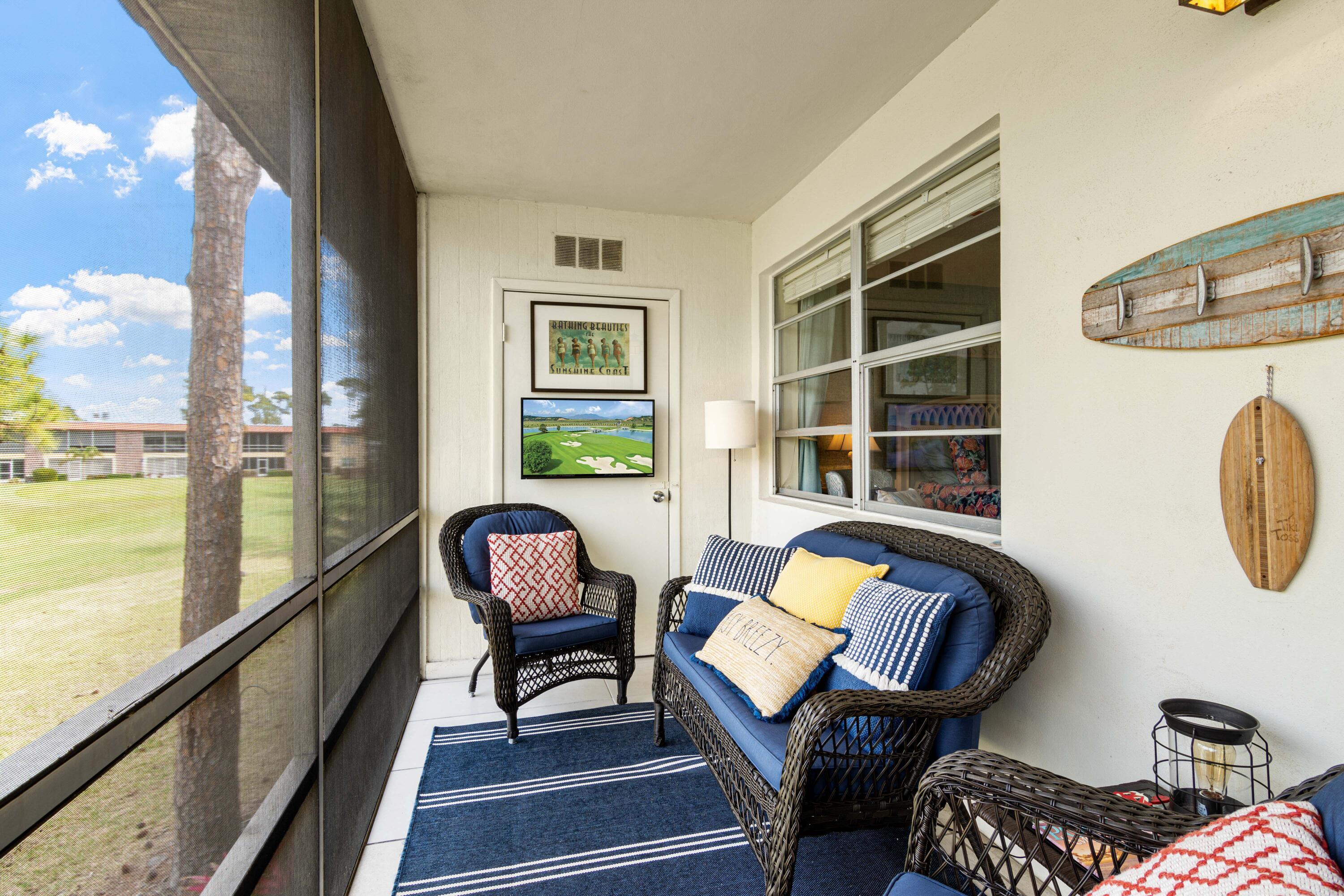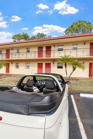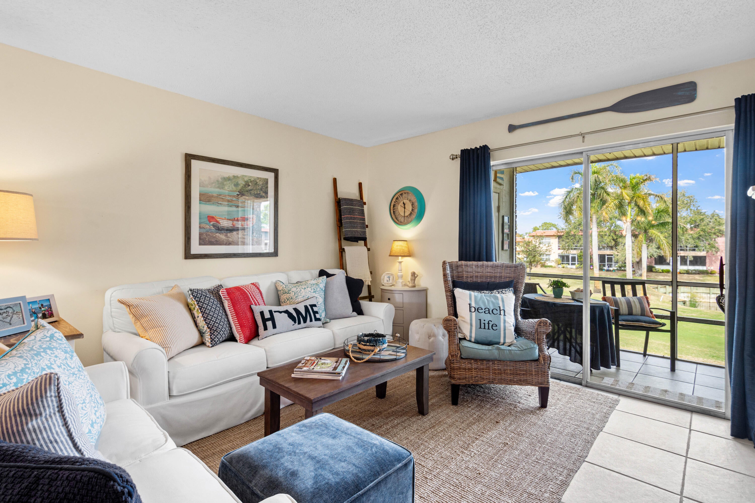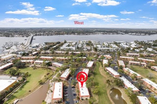 What a view in the Monterey Yacht & Country Club- your 55+, golf club community! Unlimited golf, billards, and even shuffleboard. Located on the 2nd floor and overlooking the 1st hole fairway. Tile throughout the living area and new carpet in the bedroom. The kitchen has updated cabinet doors, nest thermostat, and newer A/C fan. The bathroom has an updated vanity and toliet. The screened back patio is shady all day and a great spot to enjoy your favorite beverage. The community clubhouse and pool is a short walk away. Walk down to the riverside, community dock and enjoy gorgeous sunsets or cast a line. This unit has been well maintained and can be purchased fully furnished. Downtown Stuart, public boat ramp, marinas, shopping, and dinning are close by. Be sure to see this unit today.