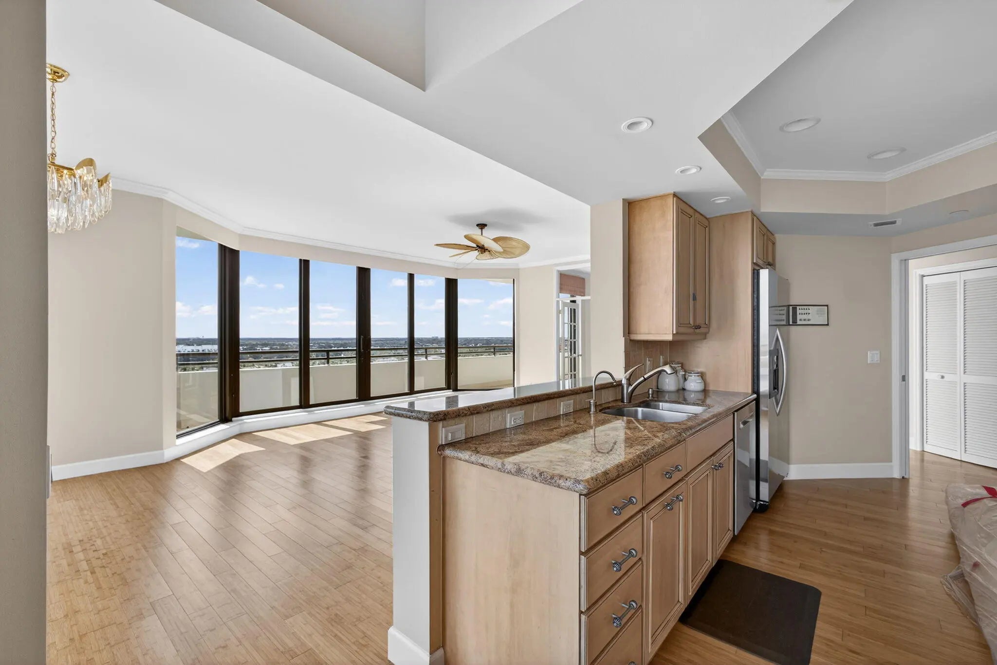 Welcome to Southporte at Jonathan's Landing. Rarely available penthouse offering breathtaking north- and south-facing views of the Intracoastal Waterway and spectacular ocean vistas. Enter through beautiful wood double doors into a spacious, open-concept layout, immediately struck by floor-to-ceiling impact windows and wraparound balconies that flood the residence with natural light and showcase the views. This exceptional home features three bedrooms, 2 baths, with the potential to add a third full bathroom, and offers over 2,000 square feet of living space. Impact windows throughout provide both comfort and peace of mind. Ideally located, Jonathan's Landing is just minutes from Palm Beach International Airport, world-class arts and culture, premier shopping, and renowned dining.