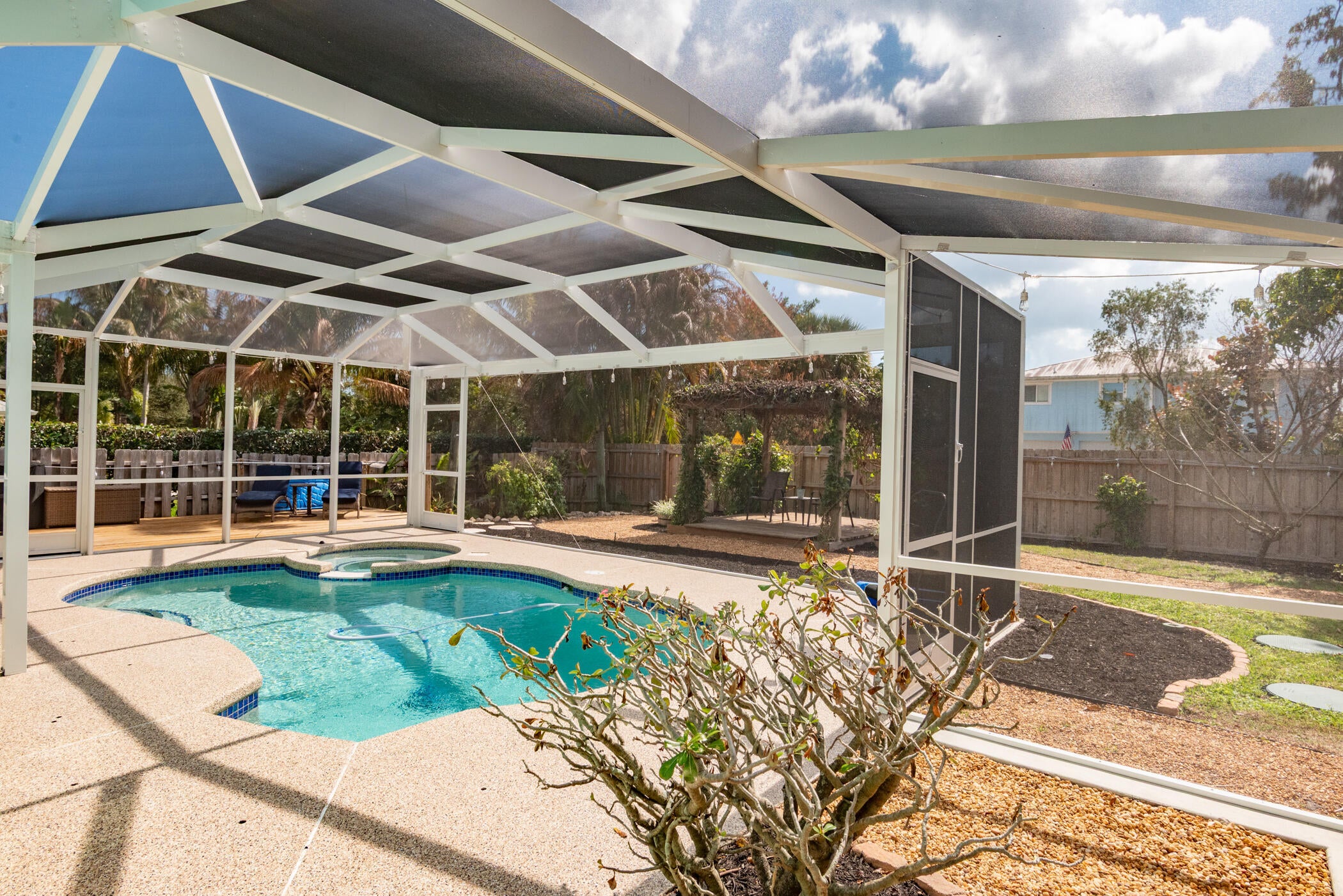 Fully upgraded Key West-style 3BR/3BA in desirable Port Salerno including deeded boat slip + lift (up to 26.5') Boat ramp and pavilion with quick marina and open water access. Rare opportunity to secure boating convenience without waitlists. Major capital improvements completed: new flat roof, new electrical panel, whole-house Generac generator, IFLO A/C, reverse osmosis system, tinted sliders (95% heat reduction), and saltwater pool conversion with new equipment. Expanded covered lanai (doubled in size) with new poly roof, screen enclosure, lighting, and fans. $1K A YEAR FEE for Electric, Water & parking for deeded dock.2024 interior paint, updated baths, custom closet build-outs, upgraded plumbing, new dishwasher, new fenced gates, pavers, new epoxy garage floor, boat trailer parking. Zero water & sewer bills. Homes with slip + lift and this level of upgrades are limited. This stunning outdoor living area features a butterfly garden, barbecue area, chaise lounge space and beautifully designed entertaining zones to enjoy the Intercoastal Breeze. This is move in ready and this one won't last!