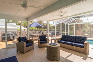 Awnings, Fence, Outdoor Shower, Screen Porch, Screened Patio, Zoned Sprinkler