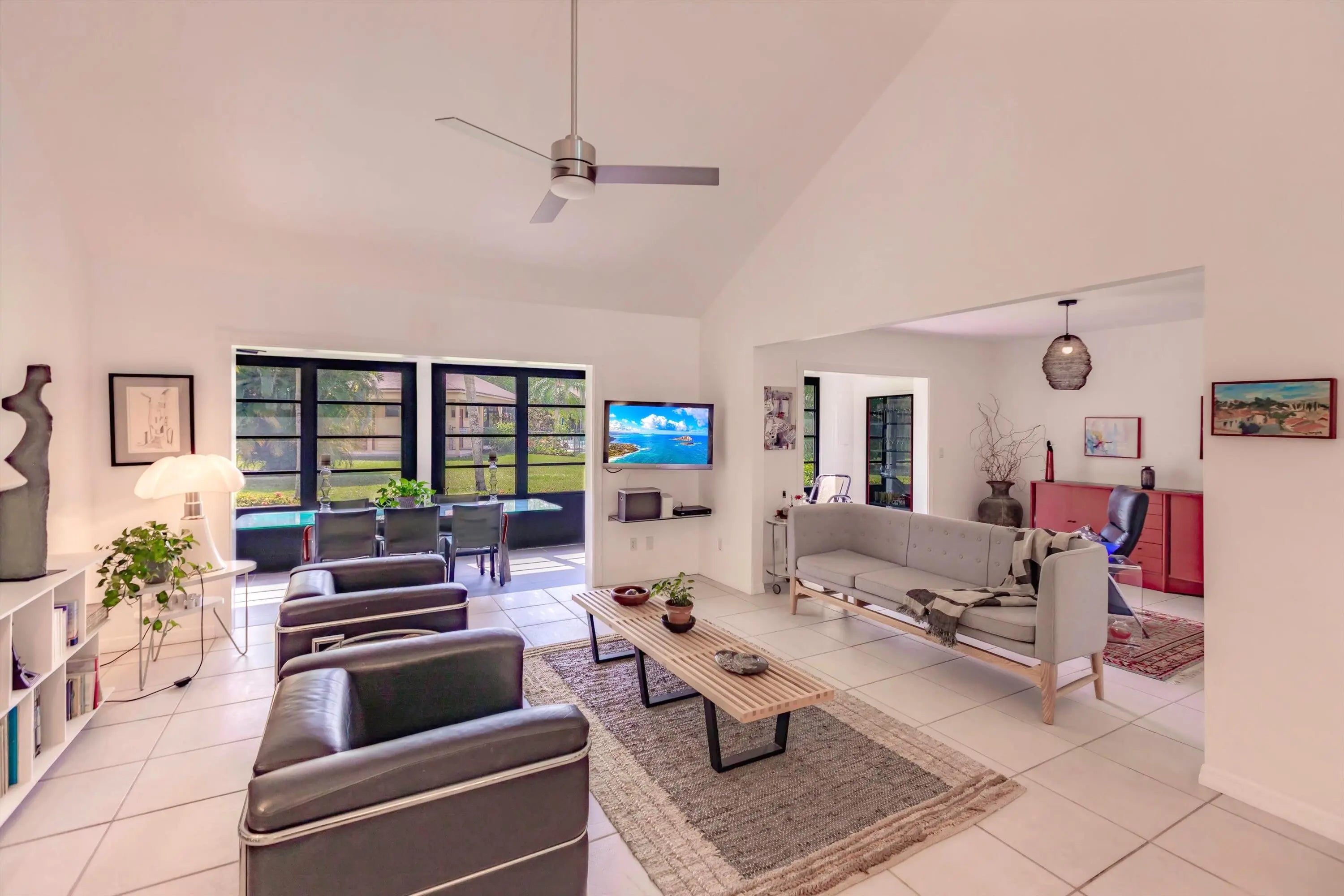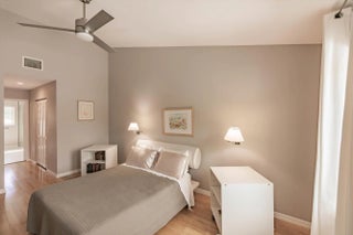 Fully renovated: modern kitchen with SS appliances and granite counters. Remodeled baths with designer tiles. New Water heater. Upgraded lighting and fans. Modern staircase and railings add to the designer look. Impact windows except the patio which is enclosed for more living space. 2Bed+Loft+Den (easily converted back to 3rd bed). Nearly turn-key with furnishings included as well as linens and kitchen items. Artwork and personal items excluded. Community pool just steps away. Also available is a clubhouse and another larger pool, tennis and pickleball. Close to Tom Fazio designed golf course and beaches. Come and see this exceptional design with open spaces and high ceilings that make this feel like a single family home with less maintenance.